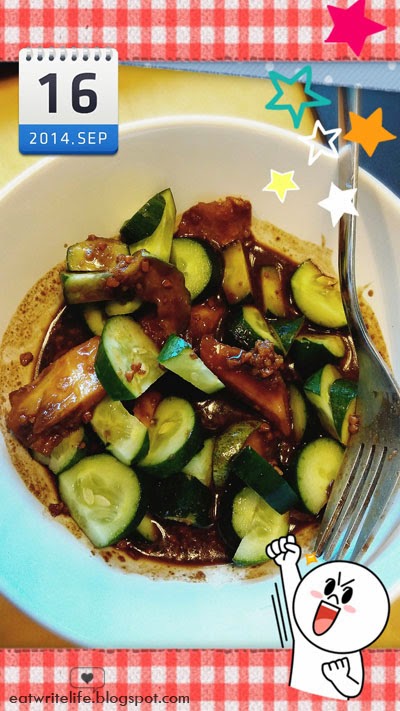 This is leftover rojak with Japanese cucumber. jl smirked at my notion of rojak being a healthy snack since the sauce is unhealthy with the amount of sugar in them. fml.
